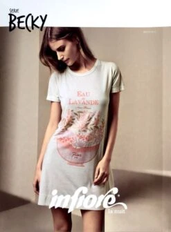 Abito donna Infore la nuit Becky maxi t-shirt in morbido modal a mezza manica con stampa sul davanti con inserti glitterati. Prodotto utilizzando materie prime di alto livello qualitativo conferiendo ottime doti di vestibilita’ e morbidezza , lunga durata nel tempo