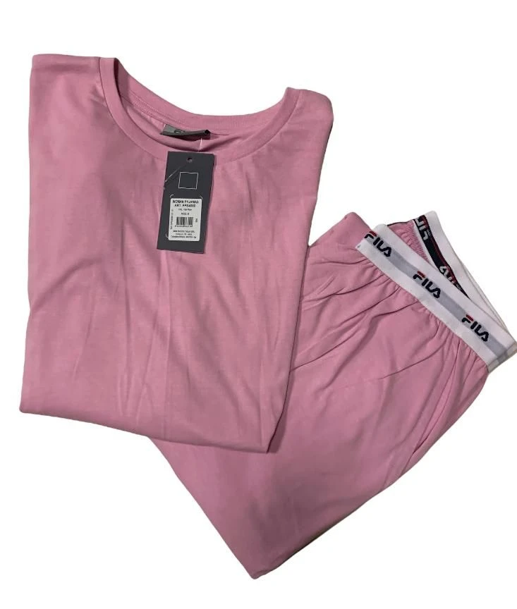 Pigiama Donna 100% cotone jersey Fila 1080 outlet pigiama lungo con maglia girocollo basica e pantalone con elastico esterno con scritta in vita e dritto in fondo. Composizione 100%cotone Ottima qualita’ lunga durata assicurata!!