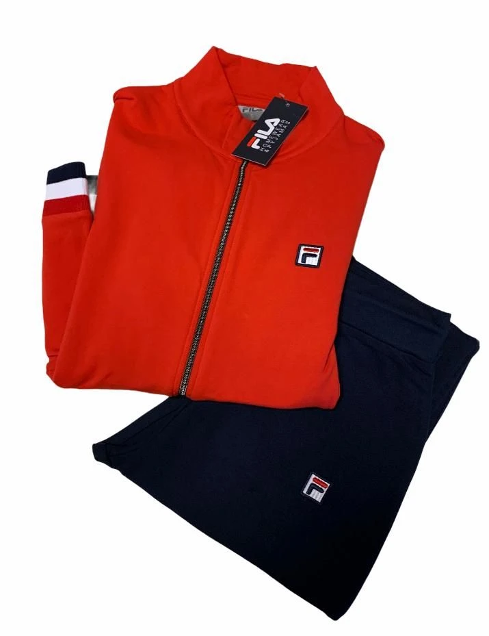 Offerta outlet Campionario Tuta Donna Fila 4061 cotone felpato invernale con giacca tutta aperta con lampo e tasche avanti con logo piccolo laterale bordato ai polsi e in vita e pantalone con logo piccolo laterale bodo alle caviglie e lacio in vita tessuto elasticizzato massimo confort ed ottima vestibilita’ Composizione:95%cotone 5%elastan