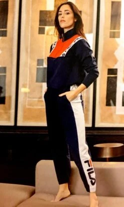 Offerta outlet Campionario Tuta Donna sportiva Fila 4063 cotone felpato invernale con felpa aperta a meta’ con lampo con scritta laterale e pantalone con banda scritta fila laterale e laccio in vita tessuto elasticizzato massimo confort ed ottima vestibilita’